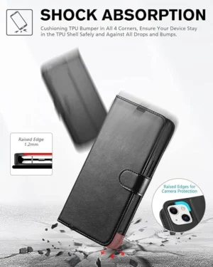 iPhone 13 / 13 Mini / 13 Pro / 13 Pro Max Synthetic Leather Flip Wallet Case – Stylish and durable protective cover with card slots, magnetic closure, and full access to ports and buttons.