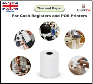 20 Rolls 57x40mm Thermal Paper – High-quality receipt rolls for cash registers, credit card machines, and POS tills. Smooth printing, fast-drying, and perfect for daily business use in the UK.