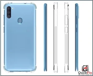 Transparent gel case for Samsung Galaxy A11. Slim, lightweight, and flexible protection that keeps your phone safe from scratches and minor drops while maintaining its original design.