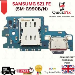 Replacement charge port with microphone, USB connector, and SIM reader for Samsung Galaxy S21 FE 5G. Restores charging, audio, and SIM functionality.