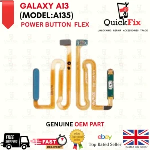 Samsung Galaxy A13 (A135) Blue Power Button Flex Cable – Includes fingerprint sensor functionality. High-quality replacement for broken or unresponsive power buttons and fingerprint recognition.
