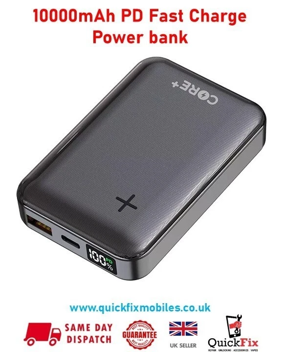 Keep your devices charged anywhere with the Core+ 10000mAh Power Bank, featuring PD fast charging and dual output via Type-C and USB ports. Its compact and lightweight design makes it ideal for travel, work, or daily use.