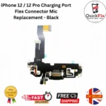 Restore full functionality to your iPhone with this Charging Port Flex Connector with Microphone Replacement – Black, compatible with iPhone 12 and 12 Pro. This premium-quality replacement part addresses common issues such as faulty charging, slow or no data transfer, and malfunctioning microphone.