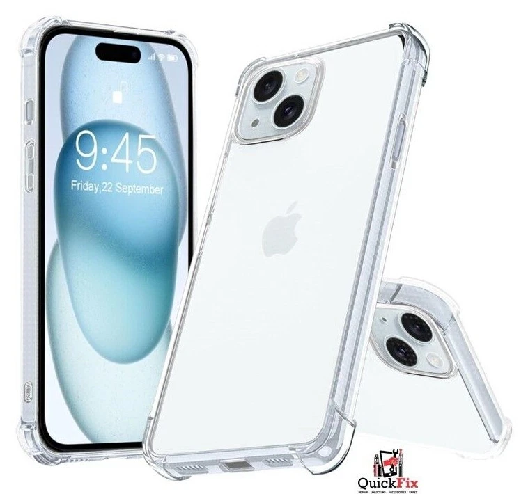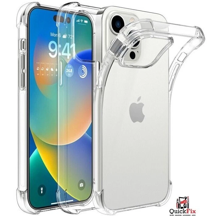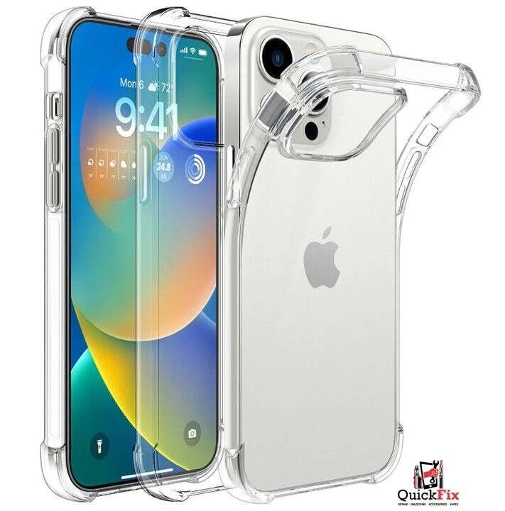 Protect your iPhone with this Clear Gel Shockproof Case, compatible with iPhone 15, 15 Plus, 15 Pro, and 15 Pro Max. Made from high-quality flexible TPU, this case provides durable protection against scratches, bumps, and minor drops while maintaining a slim, lightweight profile for comfortable handling.