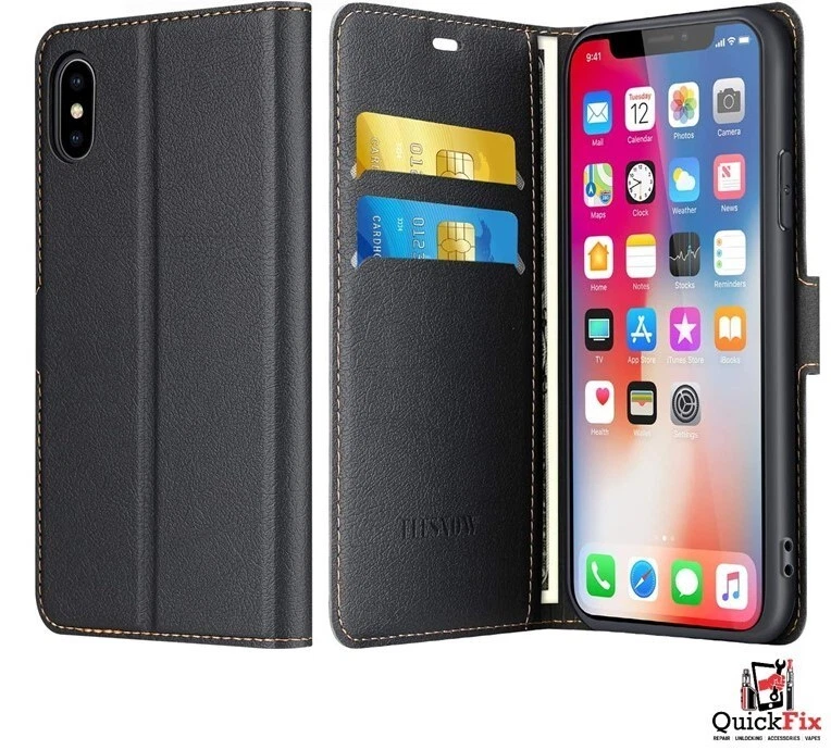 Protect your iPhone with this Premium Synthetic Leather Flip Wallet Case, designed for iPhone X, XS, XS Max, and XR. Crafted from high-quality synthetic leather, this case provides reliable protection against scratches, bumps, and everyday wear, while also offering convenient storage for cards and cash.