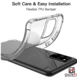 Transparent, flexible gel case for Samsung Galaxy S20 series. Provides lightweight protection against scratches, bumps, and everyday wear while showcasing the phone’s original design.