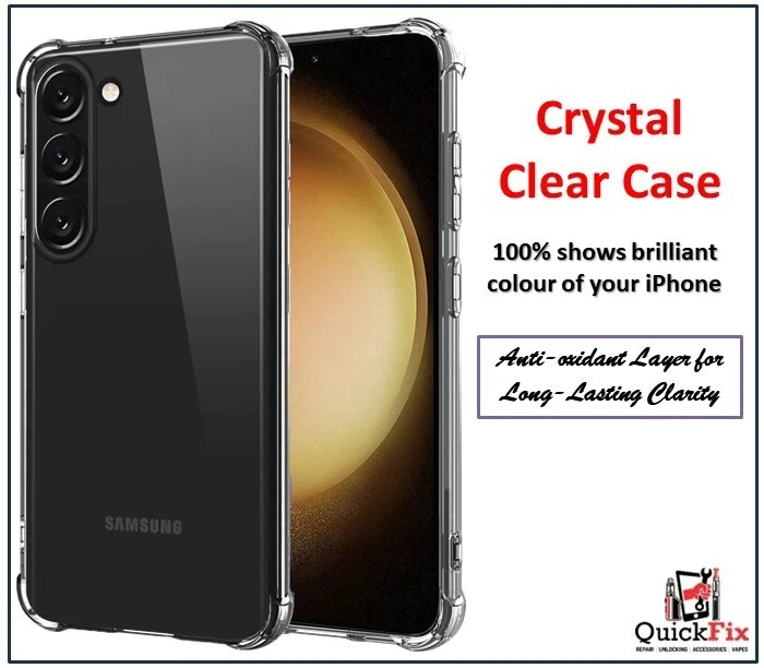 Transparent, flexible gel case designed for Samsung Galaxy S23, S23 Plus, and S23 Ultra. Protects against scratches, bumps, and everyday wear while showcasing the phone’s original design.