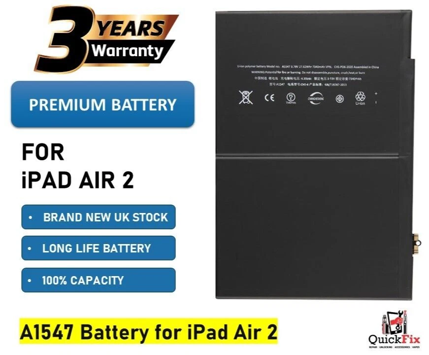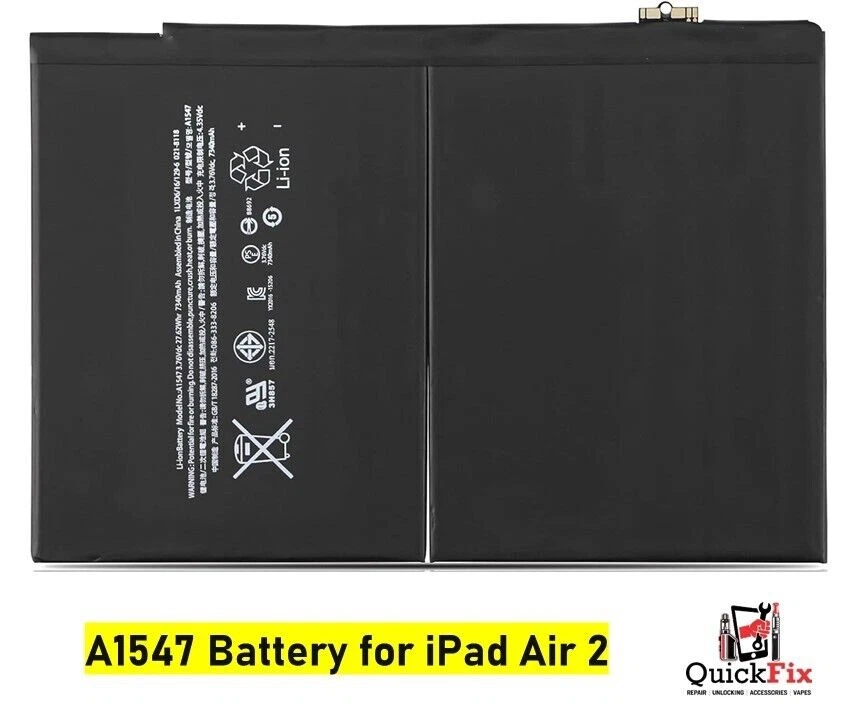 This Genuine Replacement Battery for iPad Air 2 (A1547) is designed to deliver 100% original capacity (7340mAh), ensuring your device performs like new. It is the perfect solution for iPads suffering from fast battery drain, unexpected shutdowns, overheating, or failure to hold charge.